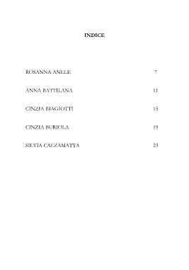 INDICE ROSANNA ANELE 7 ANNA BATTILANA 11 CINZIA BIAGIOTTI 15 CINZIA BURIOLA 19 SILVIA CALZAMATTA 23