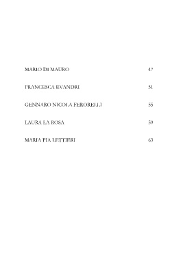 MARIO DI MAURO 47 FRANCESCA EVANDRI 51 GENNARO NICOLA FERORELLI 55 LAURA LA ROSA 59 MARIA PIA LETTIERI 63